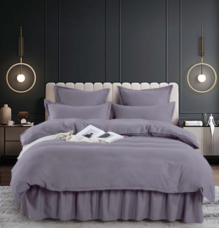 Set Lenjerie de Pat Bumbac Finet Uni cu Volanase, 6 Piese, Pat 2 Persoane, Gri