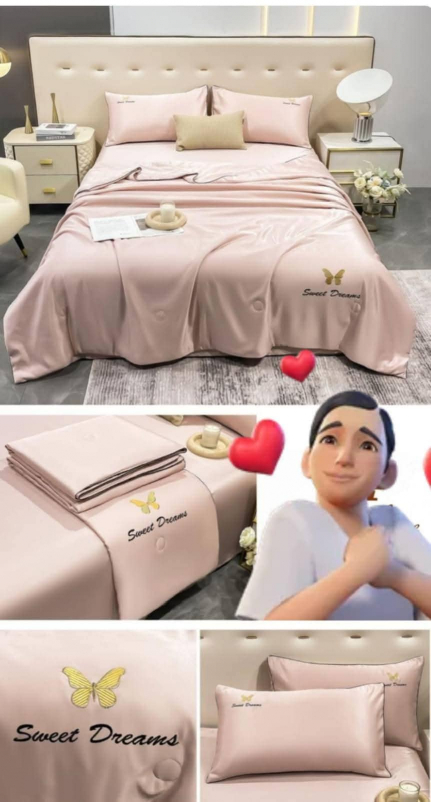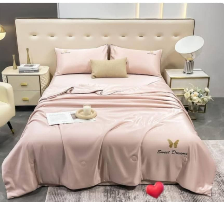 Pilota de pat din mătase completează perfect ansamblul, oferindu-ți o plăcere supremă în timpul somnului. Moale și ușoară, pătura de pat din mătase înfășoară corpul într-un înveliș de lux și confort. Aceasta menține temperatura optimă, păstrându-te cald în sezonul rece și răcoros în sezonul cald, oferindu-ți o experiență de somn perfectă.