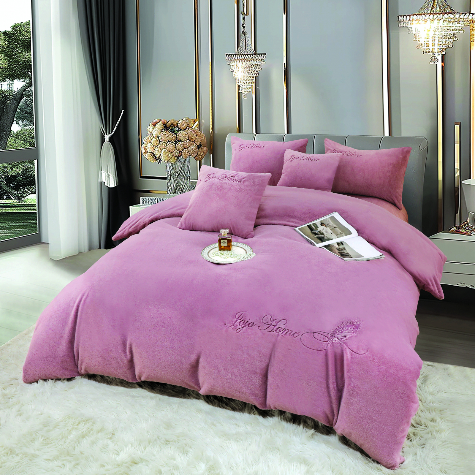 - cearceaful de pat impreună cu 2 fețe de pernă prezintă imitație de blăniță de iepure pe față exterioară, fiind netede și catifelate pe fața interioară ;