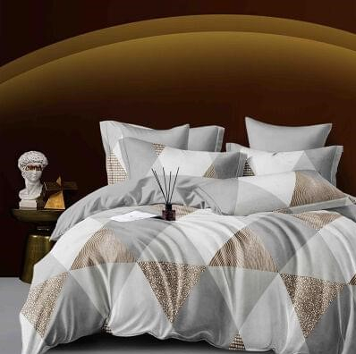 Lenjerie Din Bumbac Tip Finet 6 Piese Pentru Pat Dublu - Triunghiuri Alb/Negru/Gri