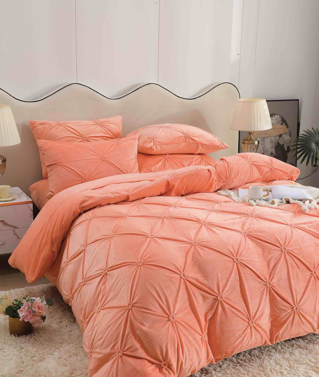 Fețele de perna au pliuri brodate in forma de nasturei, fapt ce ii conferă un stil de rafinament și elegantă.