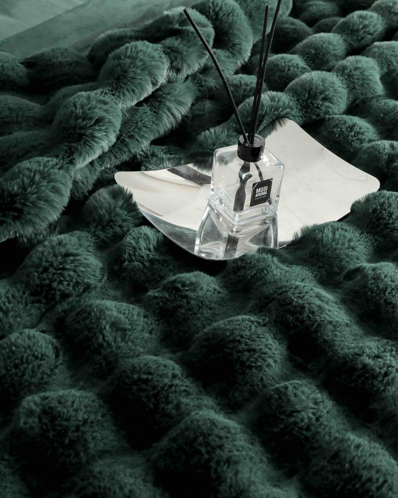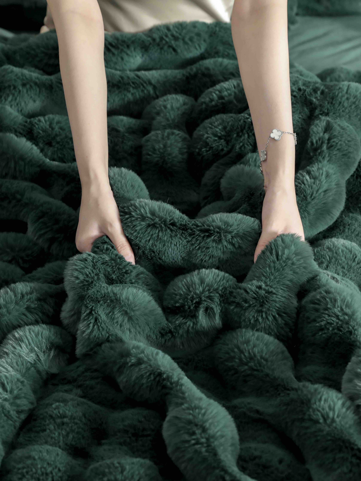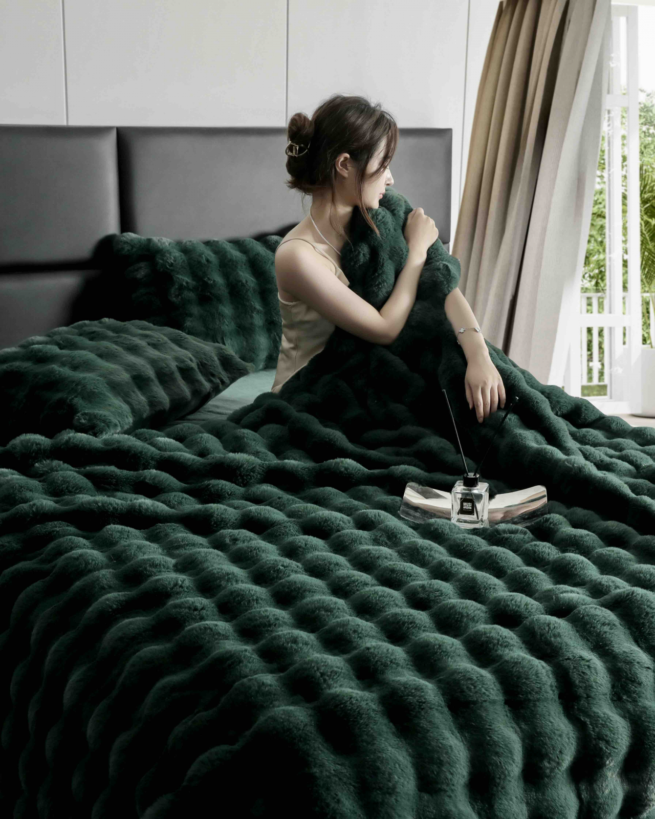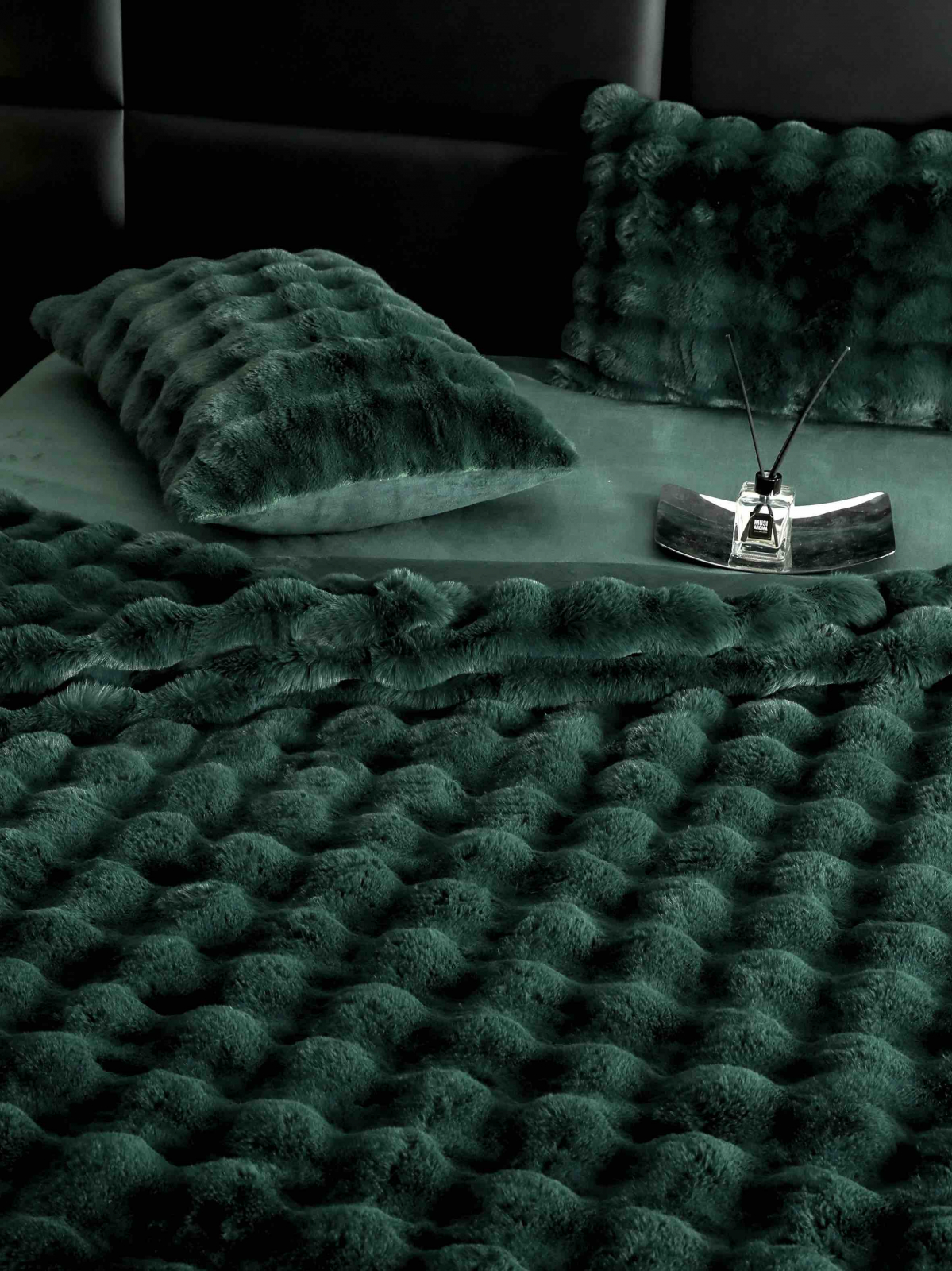 Lenjerie pat dublu, ExtraPufoasa, din Blanita artificiala de Iepure, 6 piese - Verde Smarald